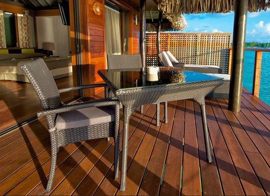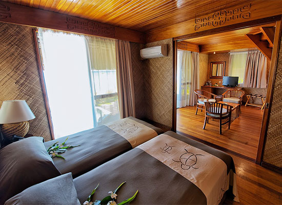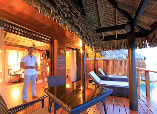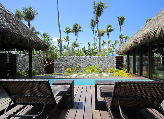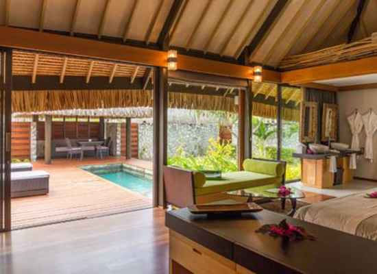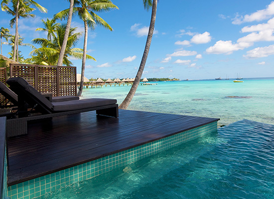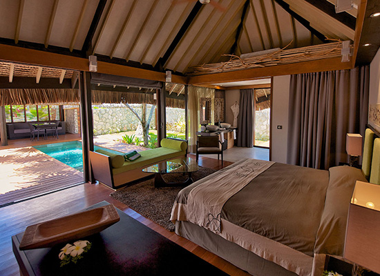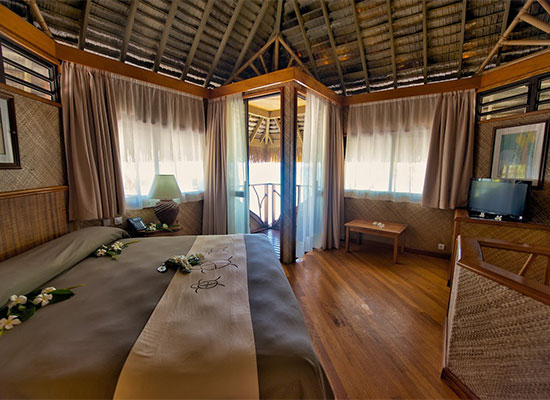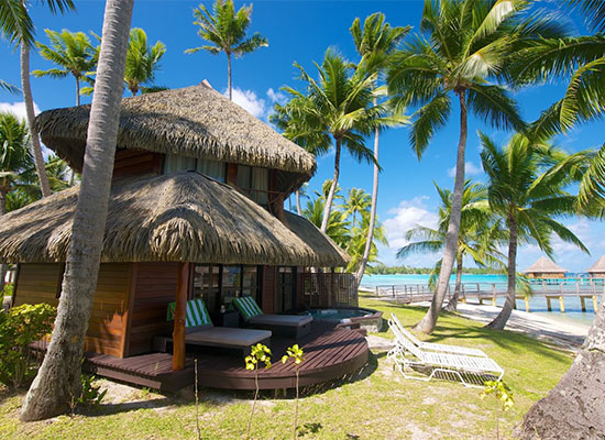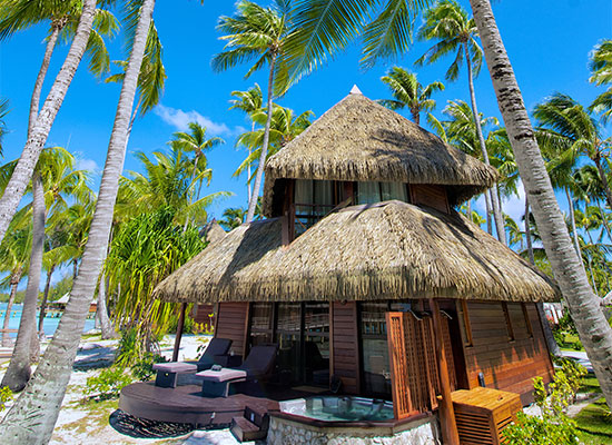 The resort enjoys a sense of seclusion being nestled in the haven of a shady coconut plantation. The resort's restaurant serves local and French fusion cuisine with fresh seafood, coconuts, tropical fruits, Tahitian vanilla, Rangiroa honey – all the wonderful flavors of Tahiti. An overwater bar and infinity pool hover over the lagoon with perfect sunset vantage points, and a fully-appointed spa offers traditional Polynesian treatments. Don't miss the locally produced Rangiroa Wine, the only wine in the world made on a coral atoll.