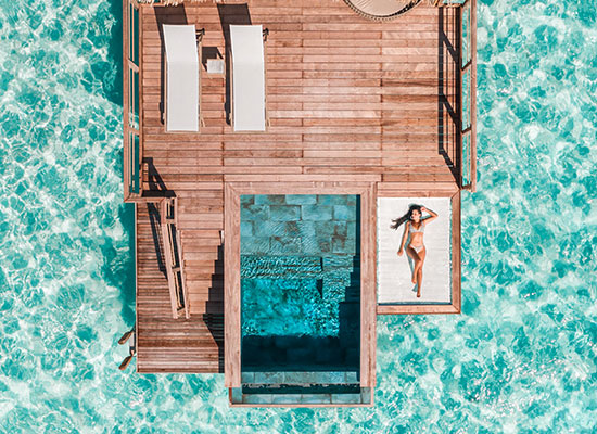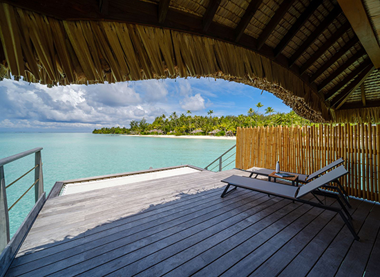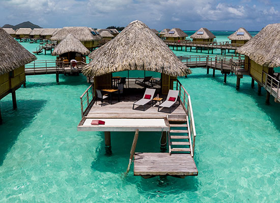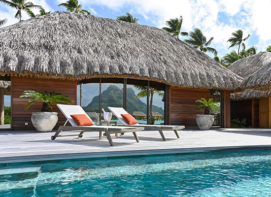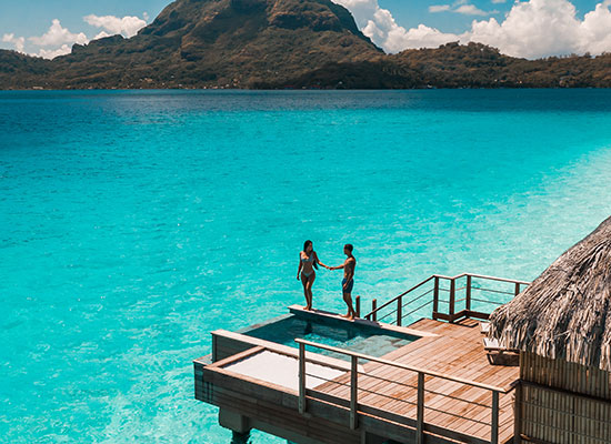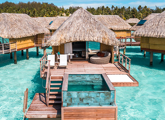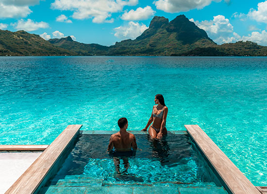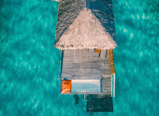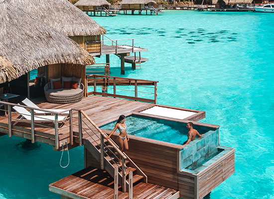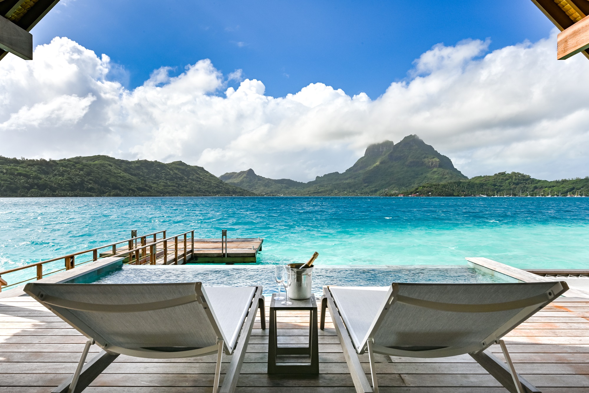 The End of Pontoon Overwater Suite with Pool is the most spacious of the overwater villas, overlooking the beautiful lagoon of Bora Bora and facing the majestic Mount Otemanu.