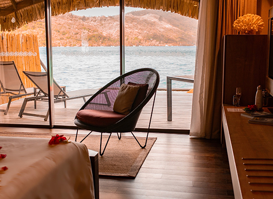 Designed with Polynesian architecture in mind, these stunning villas offer a spacious bedroom and an en-suite bathroom, along with direct access to the lagoon from your outdoor terrace. The plunge pool facing Mount Otemanu is a must have luxury!