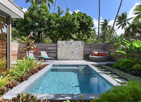 The Garden Villa with Pool, nestled in the resort's verdant tropical garden, is the most secluded accommodation option.