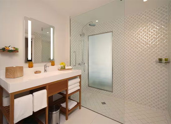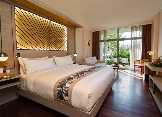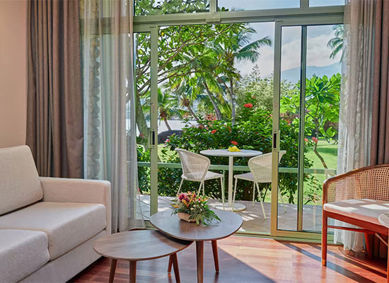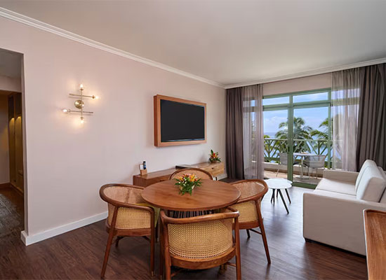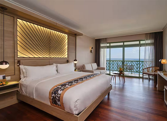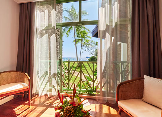 The standard guest room features a king bed and is beautifully decorated with island-inspired artwork. It includes a spacious seating area, accommodates up to three adults and features air conditioning, black-out curtains, the option for connecting rooms, evening room service, a flexible work environment, a hairdryer, an iron, an ironing board, a minibar, and tea and coffee making facilities.